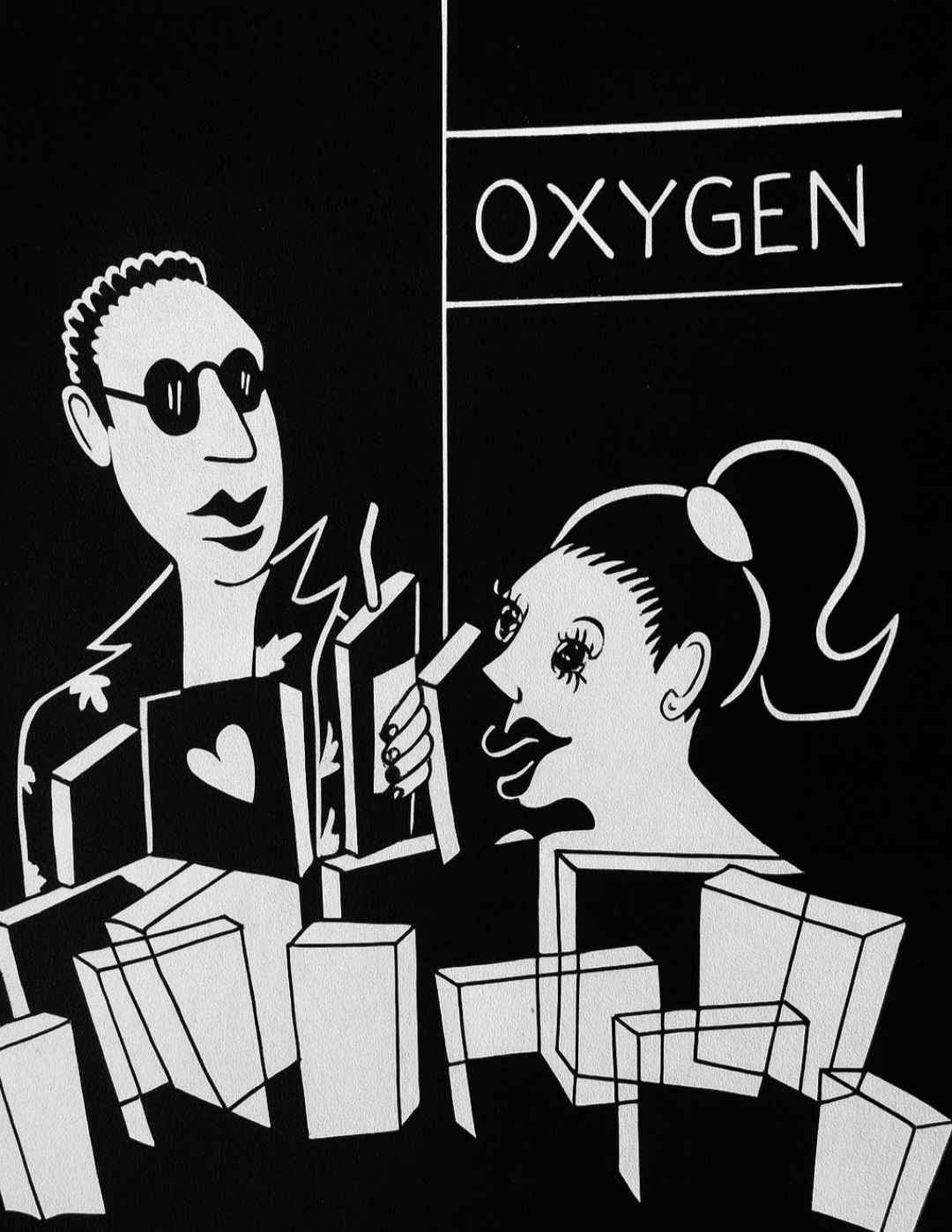 Technique mixte, dessin retravaillé en noir et blanc. 40 cm X 30 cm